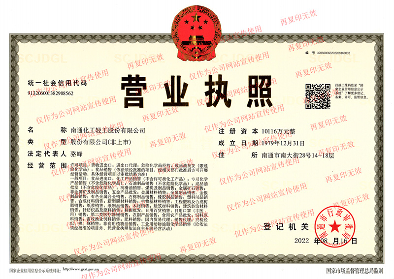 南通化工輕工股份有限公司成立于1963年7月1日, 1997年改制為股份有限公司,注冊(cè)資本10116萬元。公司自1963年成立以來,始終堅(jiān)持“誠信為本”的商信文化,向海內(nèi)外廣大供應(yīng)商按時(shí)足額履行付款、向廣大客戶按時(shí)按質(zhì)按量按價(jià)履行供貨、向金融機(jī)構(gòu)按時(shí)足額履行還款等,在商界享有很高聲譽(yù)。