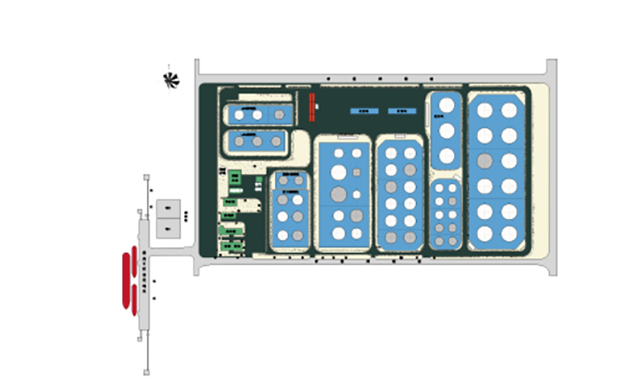 擁有各類儲(chǔ)罐24個(gè),總罐容8.94萬(wàn)m3。其中,壓力儲(chǔ)罐4個(gè)(1.2萬(wàn)m3)、常壓(微壓)儲(chǔ)罐20個(gè)(7.74萬(wàn)m3),單個(gè)罐容2700m3-5300m3。